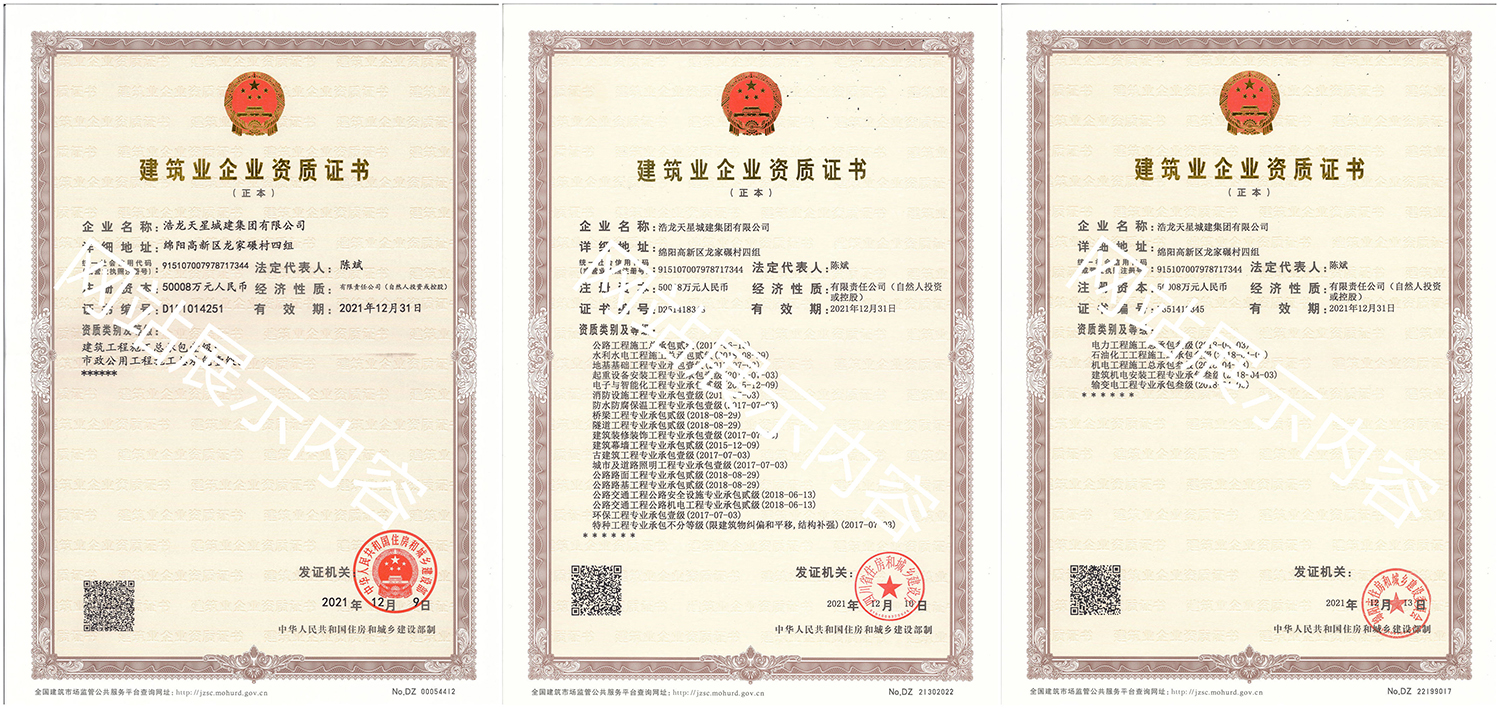 浩龍?zhí)煨浅墙瘓F(tuán)有限公司,2007年成立于“李白故鄉(xiāng)、中國科技城”—四川省綿陽市,企業(yè)注冊資本金5.0008億元。公司共有27項(xiàng)建筑業(yè)企業(yè)資質(zhì),其中國家一級資質(zhì)11項(xiàng),二級資質(zhì)10項(xiàng),三級資質(zhì)5項(xiàng),特種資質(zhì)不分等級1項(xiàng),類別涵蓋建筑、市政、水利、機(jī)電、隧道、起重設(shè)備安裝等基礎(chǔ)及未來發(fā)展重點(diǎn)專業(yè)。公司下設(shè)三個辦事處,業(yè)務(wù)范圍輻射全國,在建項(xiàng)目三十余個,累計完成產(chǎn)值超11億元。公司是綿陽市建筑施工企業(yè)協(xié)會副會長單位、綿陽遂寧商會會長級單位、綿陽首批建筑業(yè)綠卡企業(yè),在綿陽本地企業(yè)中綜合實(shí)力名列前茅。
